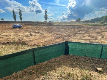 Na staveništi pracují v těchto dnech kromě samotných stavařů i geodeti a pyrotechnici, po skrývce ornice do terénu vyrazili archeologové, kteří tu provádějí záchranný výzkum.
